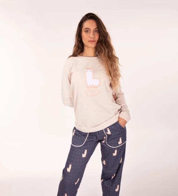 Zachte en warme winterpyjama set voor dames met lama motief.